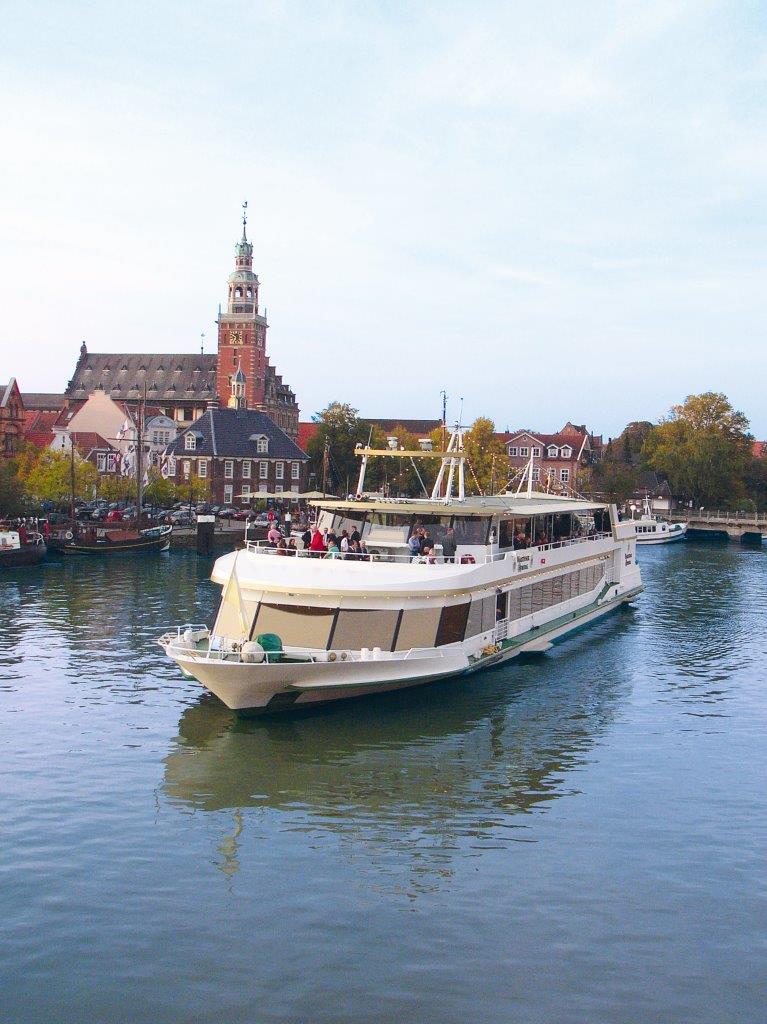 - Schifffahrt mit dem Ems-Traumschiff „Warsteiner Admiral“ von Leer über die Leda und Ems (Dauer ca. 3 Stunden)